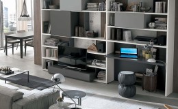 Soggiorni moderni con soluzioni tecnologiche, mobili tv, scaffali e librerie da soggiorno in diverse essenze di legno e colori, adattabili a qualsiasi tipo di ambiente e coordinabili con i complementi d’arredo firmati Gruppo Tomasella.